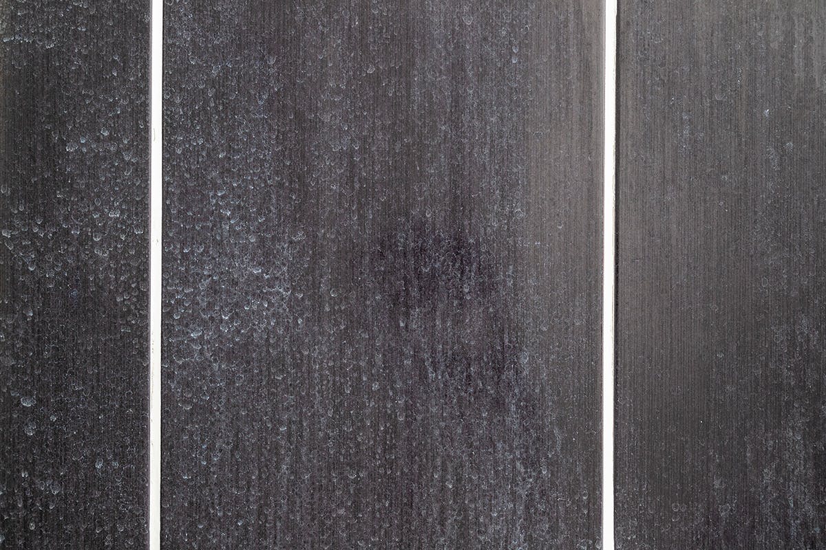 Vattnet kan vara hårt och innehålla mycket kalk, och när vattnet torkar på kakelplattorna fastnar kalken på dem som vita avlagringar. Kalk är särskilt lätt att se på svarta kakel.