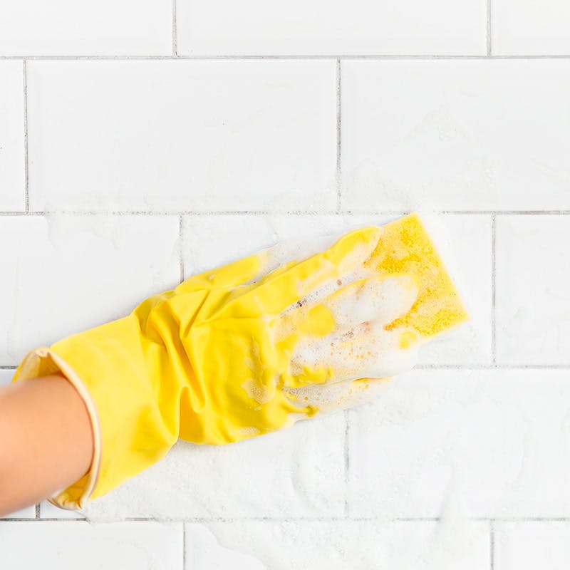 - Skrubba kakelplattorna noggrant med en svamp.