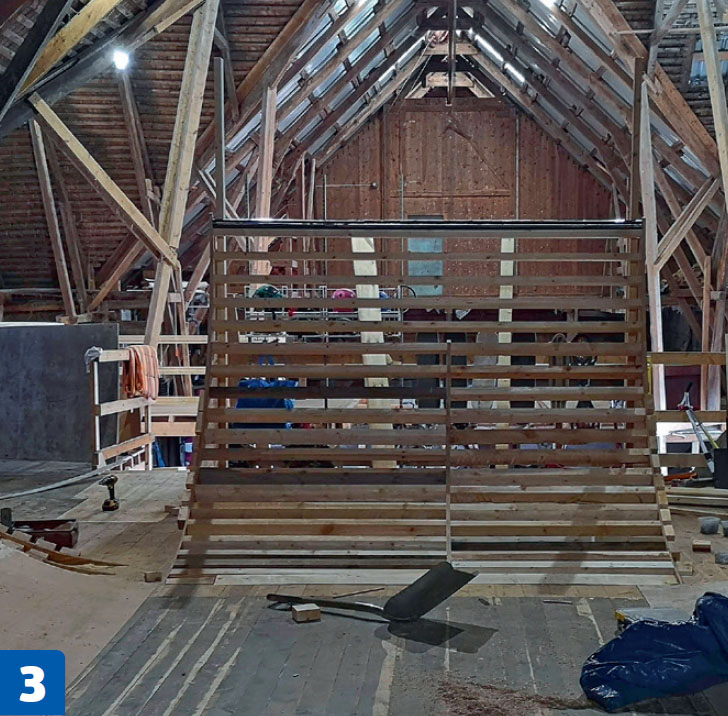 Hörnen på den stora rampen skapas genom att sätta tre vanger mellan de angränsande modulerna. Här ska skivorna monteras direkt på vangerna och inte på reglar.