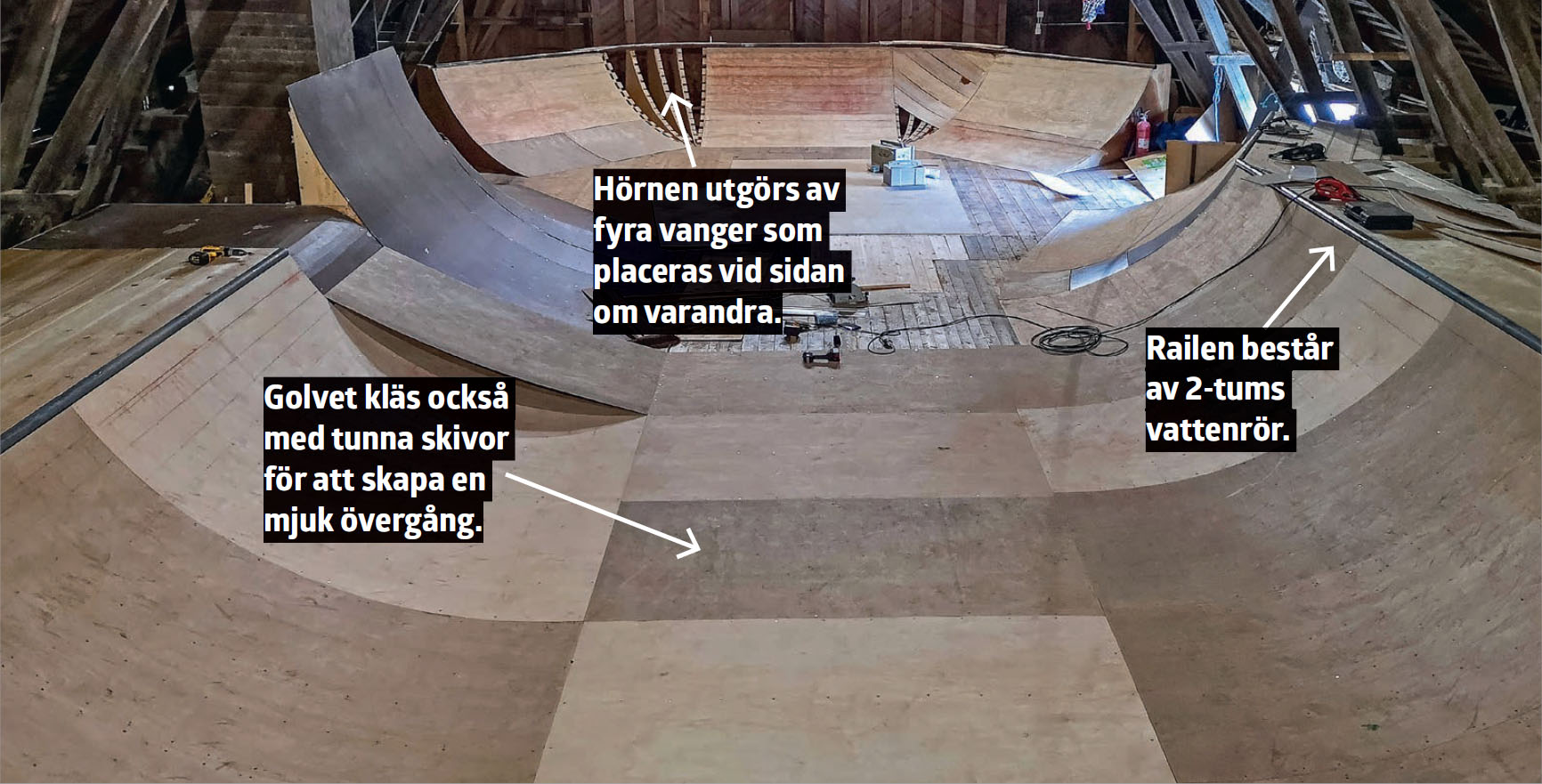 Skivorna till rampen ska vara max 6 mm tjocka, annars kan de inte böjas.