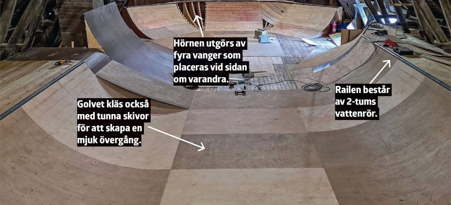 Du kan göra ramperna extra höga. De byggs av plywood och reglar, och här måste plywoodvangerna förstärkas extra med reglar.