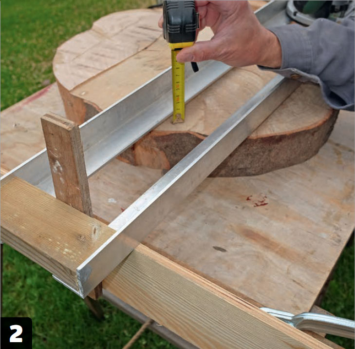 Du kan enkelt själv göra styrskenan av ett par L-formade aluminiumskenor, 40 x 40 mm, som i varje ända skruvas fast i en träbit.