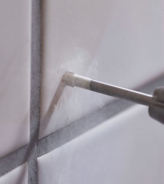Styr borren i keramiska plattor.