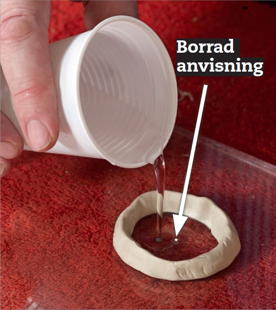 Det är viktigt att du kan lägga glaset vågrätt, för annars kan det vatten du kyler med rinna bort. Lägg glaset på en matta eller filt medan du borrar.