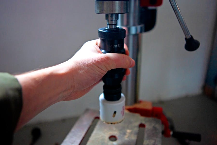 Hål i hårda, släta ytor klaras lätt och snabbt med en pelarborrmaskin.