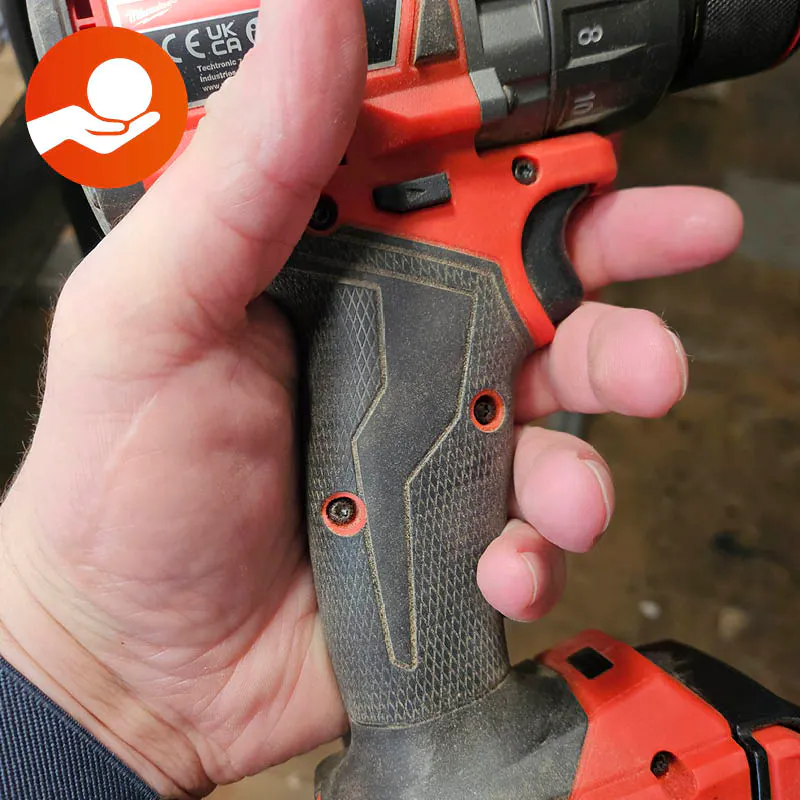 Storlek och vikt är viktiga aspekter av ergonomi, men även utformningen spelar en viktig roll – om knapparna är intuitivt placerade och lätta att använda. Handtagets utformning är också viktig, liksom om det är täckt med halkfritt gummi, vilket ger ett bekvämt och säkert grepp om maskinen.