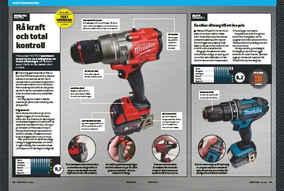 Trots sin blygsamma storlek är Milwaukees M18 FPD3 ett imponerande kraftpaket med ett vridmoment på 158 Nm. Den är utrustad med en automatisk stoppfunktion som bromsar maskinen om borret fastnar. Men med så mycket kraft krävs det ganska mycket för att den automatiska stoppfunktionen ska träda i kraft, så du måste hålla i ordentligt.