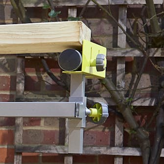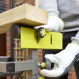 2. Hållarna på båda sidor ger stöd till brädorna. Hållarna kan enkelt justeras på höjden, så att de passar till din såg.