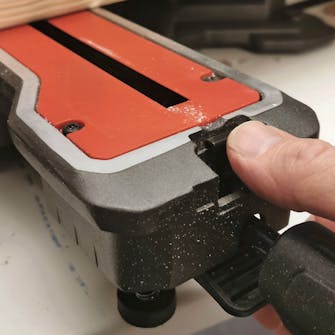 Vi var tvungna att justera klingan en aning innan allt fungerade perfekt. Det är faktiskt det råd som alla sågar har i bruksanvisningen: börja med att nivellera mothållet och klingan.