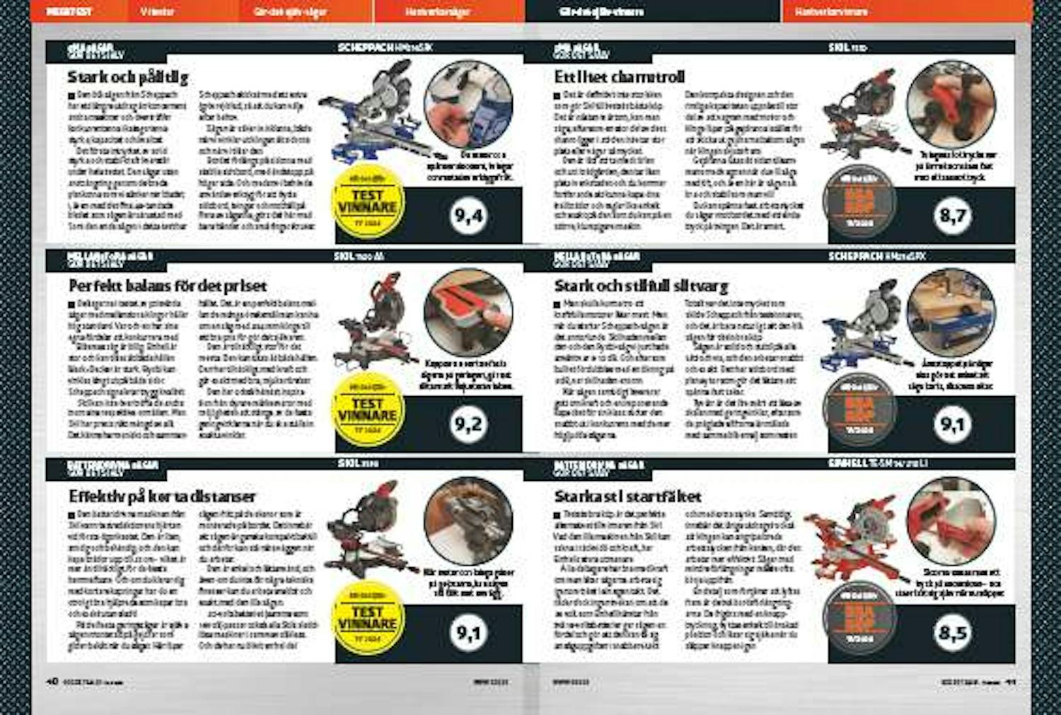 Om du behöver ultraprecis sågning i sneda vinklar rekommenderar vi både Scheppach och Skil. Det här är de två sågar som tävlade om titlarna testvinnare respektive bra köp - och det krävdes ett målfoto innan vi kunde utse en testvinnare av de två.