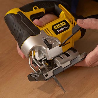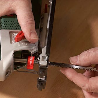 På nya sticksågar går det ofta att byta ut sågbladet utan att använda verktyg. Bladet frigörs när du trycker in en knapp och kan då lätt ersättas av ett annat.