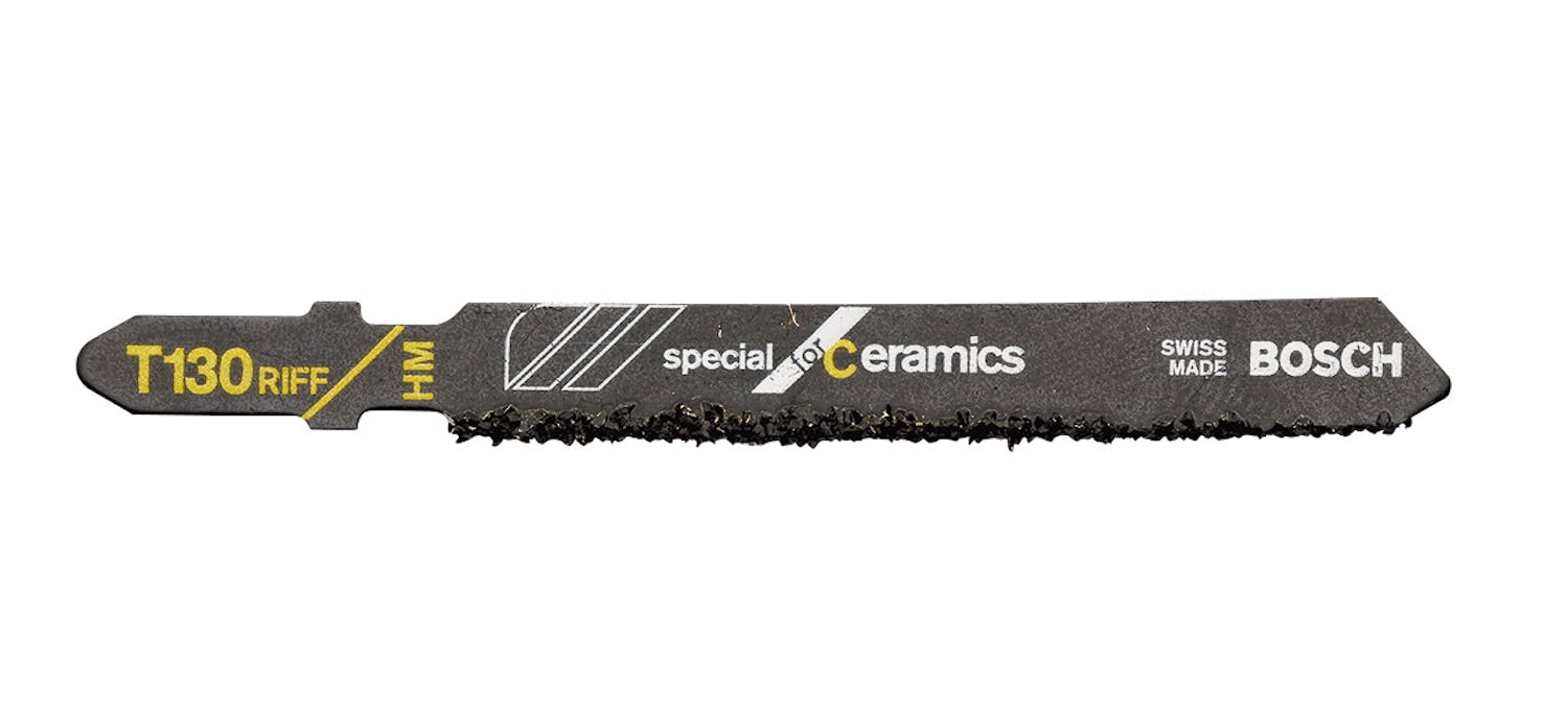 Mellanhårda keramiska plattor kan sågas långsamt med detta sågblad som är perfekt för kakel. Hårda plattor delas med vinkelslip. Stöd plattan så att den inte bryts när du sågar.