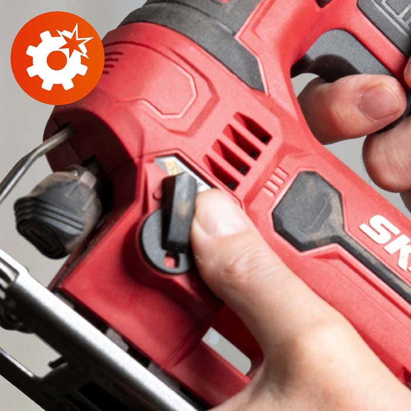 Bland sågens funktioner är det värt att lyfta fram knappen för att ställa in pendeln. De små symbolerna gör det enkelt att välja rätt inställning - även om du ännu inte är världsmästare på att göra det själv.