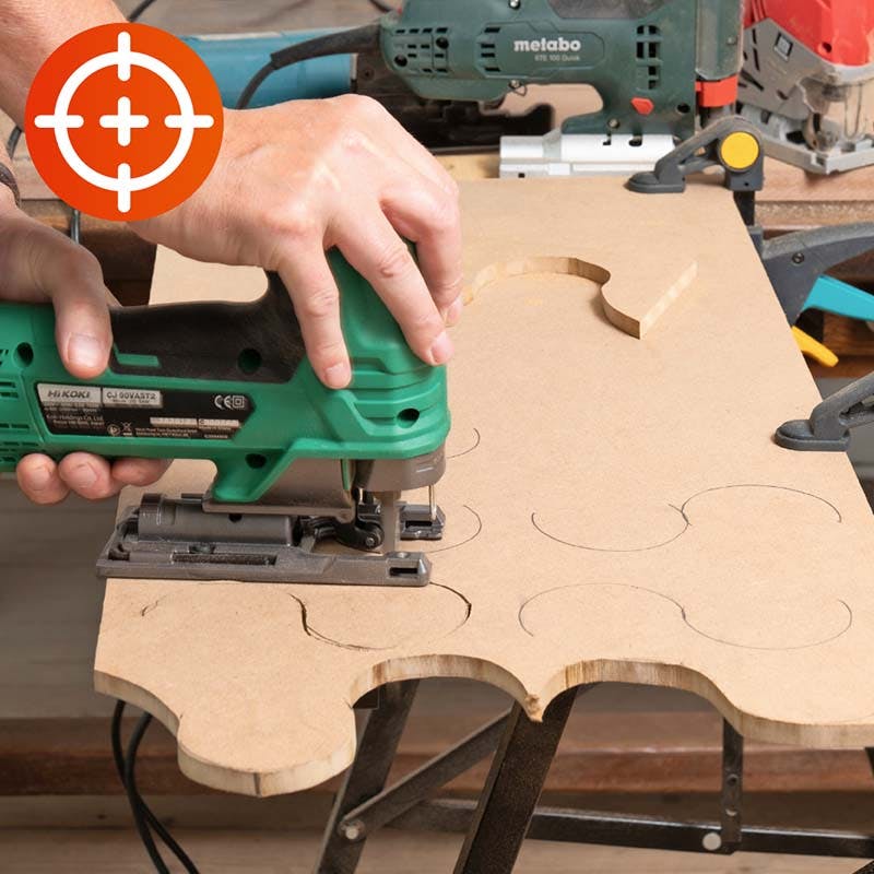Vi testar och utvärderar varje deltagare utifrån hur lätt det är att såga i MDF-skivor efter en kurvig och snirklig linje.