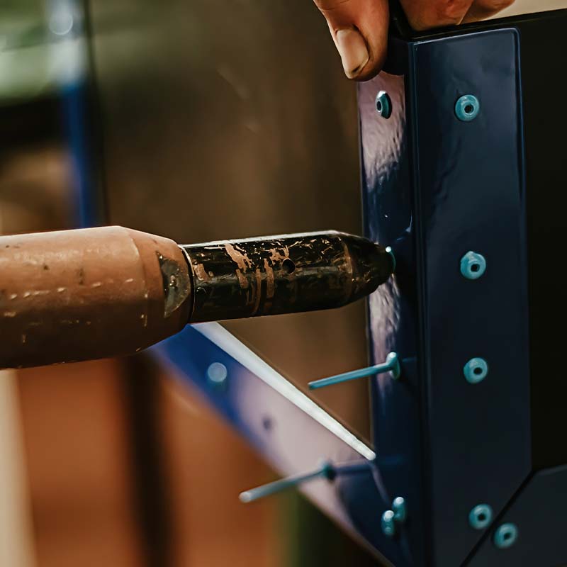 Popnitar är smarta eftersom de kan fästa två plattor även om du bara har åtkomst från ena sidan. Popnitar består av en cylinder (blå) med en inre kärna, så kallad splint (röd). När den dras in mot cylindern, expanderar den på baksidan och skapar ett starkt fäste mellan de två föremålen.