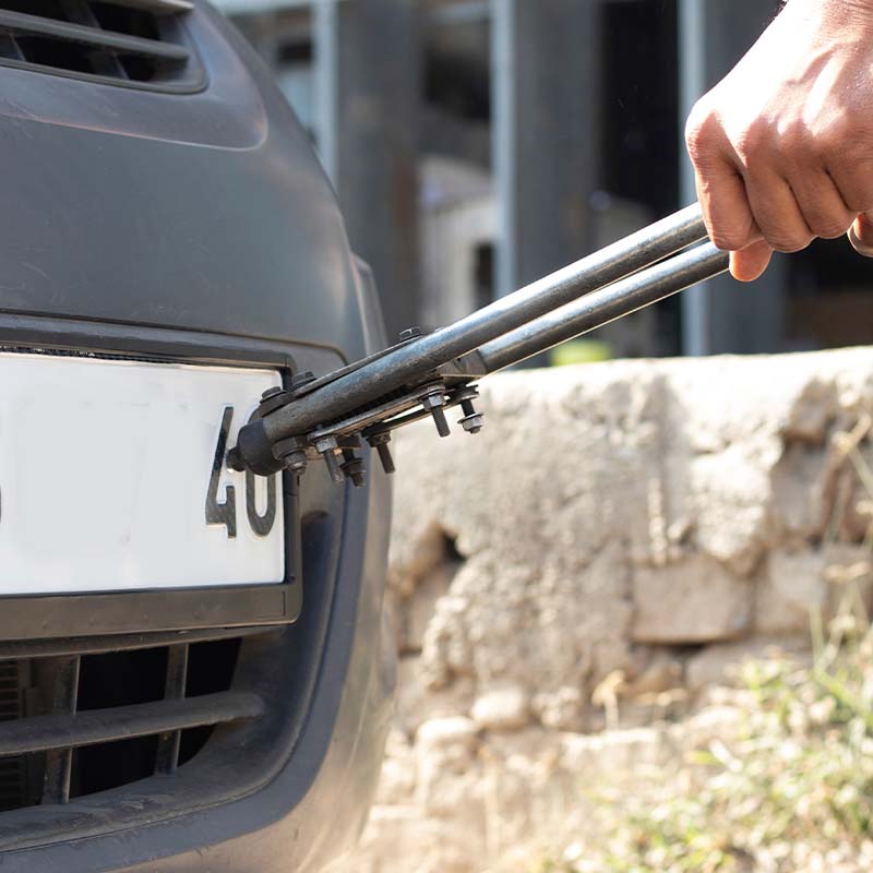 När du är klar sätter du in niten genom de förborrade hålen och drar åt den med några tryck med tången. Resterna av niten kommer att brytas av när du drar åt den med tången.