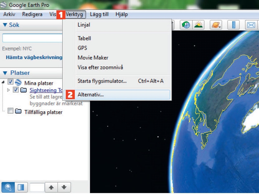 Google Earth Pro fungerar på ungefär samma sätt på både Windows och Mac. Har du Windows ska du dock se till att ändra programmets så kallade kompatibilitet till Windows 7, som vi visar här.