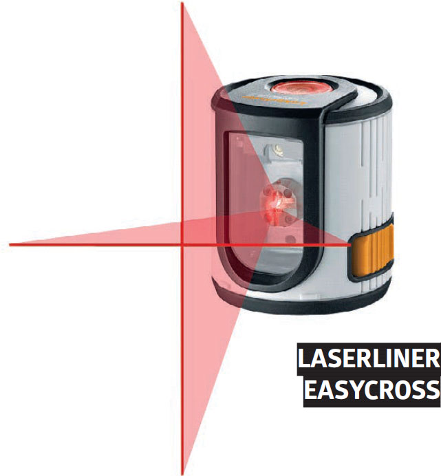 Lasern projicerar två linjer i en vinkel på 90 grader. Det är till stor hjälp när man ska sätta upp kakel eller hänga upp tavlor.