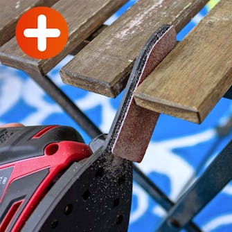 Även om excenterslipen är världsmästare på stora ytor, så gör den runda slipskivan att den inte kommer åt i hörnen. Detsamma gäller för skrymslen och vrår på byråer, trappor och trädgårdsmöbler. Och det är här som den lilla multislipen verkligen kommer till sin rätt.