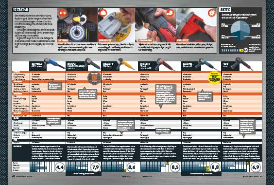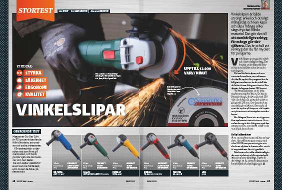 Vinkelsliparna testas och betygsätts i de här fyra kategorierna; styrka, säkerhet, ergonomi och kvalitet.