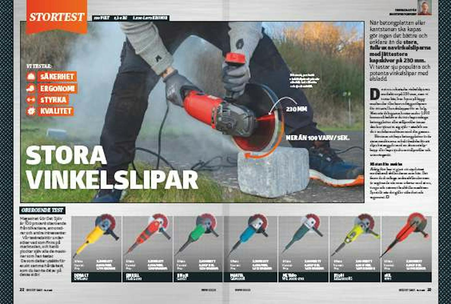 De stora och starka vinkelsliparna med skivor på 230 mm, som vi testar här, kan hyras på byggmarknader eller hos verktygsuthyrare för ett antal hundralappar för en helg.