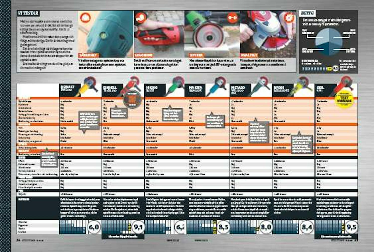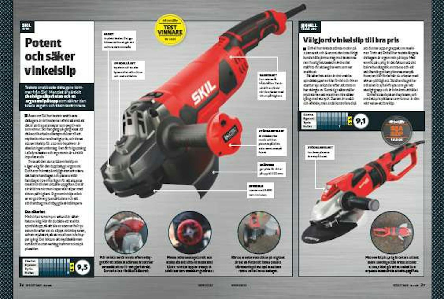Skil har gång på gång visat att de kan tillverka kvalitetsprodukter till ett mycket konkurrenskraftigt pris, och deras stora vinkelslip för 230 mm kapskivor är absolut inget undantag. Den får höga poäng i alla fyra testen och ergonomin är särskilt imponerande.