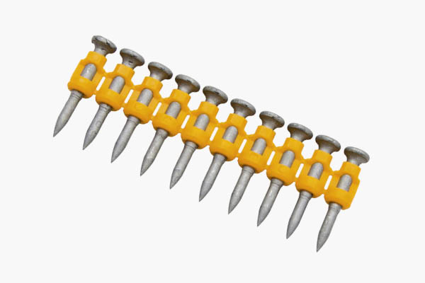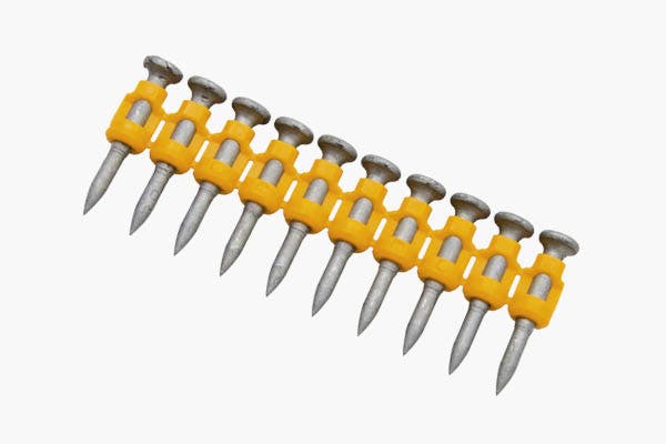 Korta, härdade spik som kan tränga in i betong, tegel eller stålprofiler.