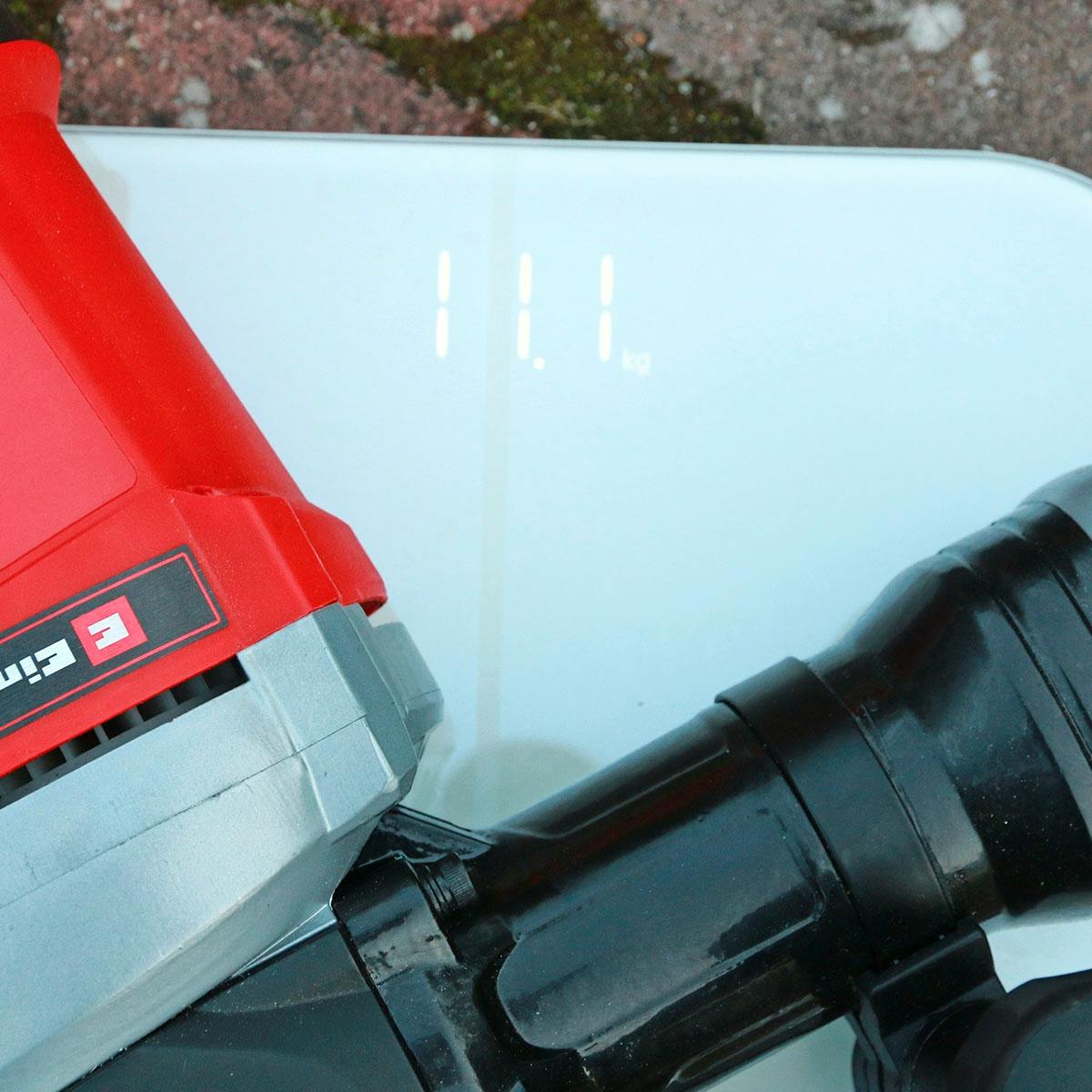 2. Med en vikt på bara 11,1 kilo med mejsel är Einhell flera kilo lättare än konkurrenterna. Det betyder en del vid långvariga arbetsuppgifter.