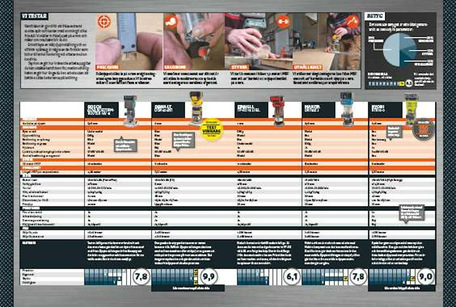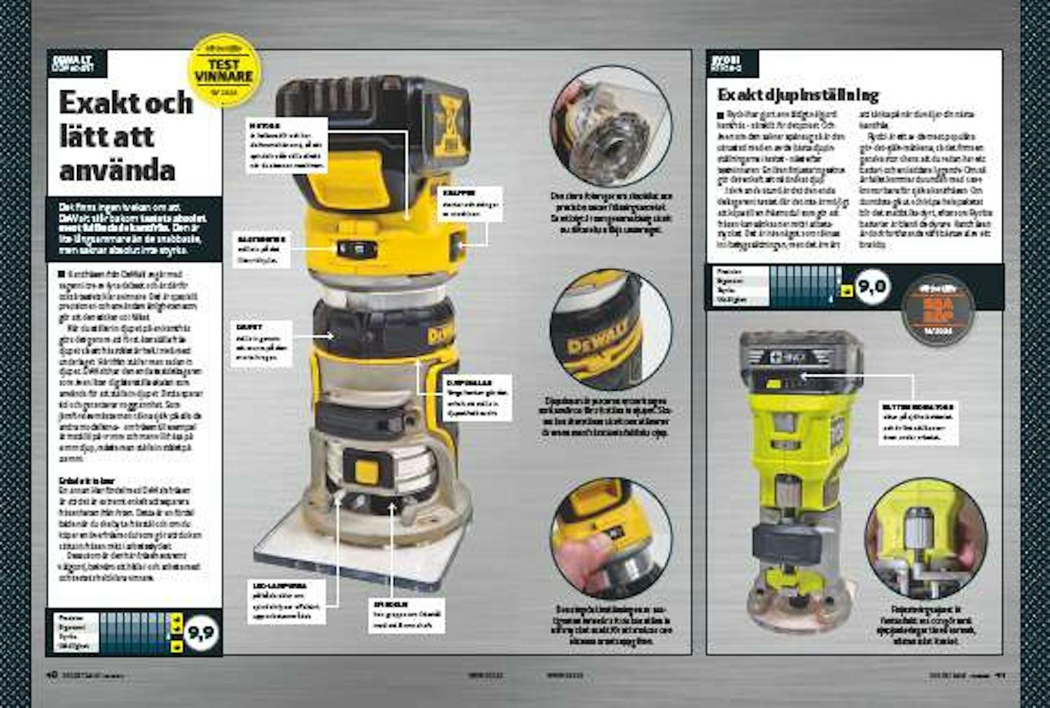 Kantfräsen från DeWalt avgår med segern i tre av fyra deltest och är därför också testets klara vinnare. Det är speciellt precisionen och användarvänligheten som gör att den sticker ut i fältet.