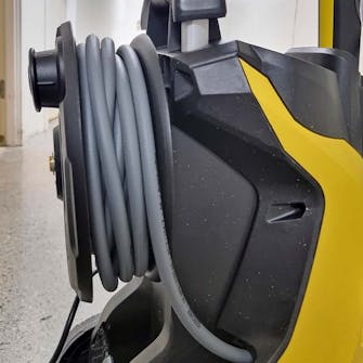 Slangen på tio meter gör det lätt att komma runt hela bilen utan att du behöver flytta maskinen. Slangen är både solid och mjuk, och den rullas ut helt utan att rulla ihop sig. Den är också lätt att rulla upp igen.