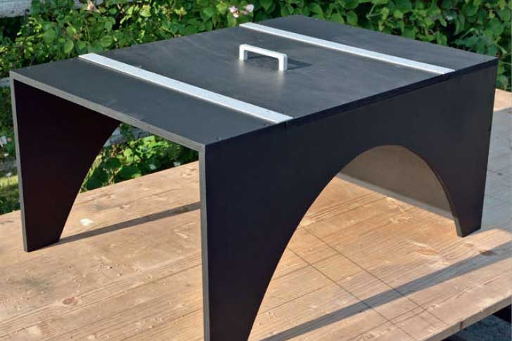 Då är lådan färdig. Alla skivkanter bör flukta utan skevheter. Mellan locket och takdelarna är det en smal springa. Den täpper vi igen snart.