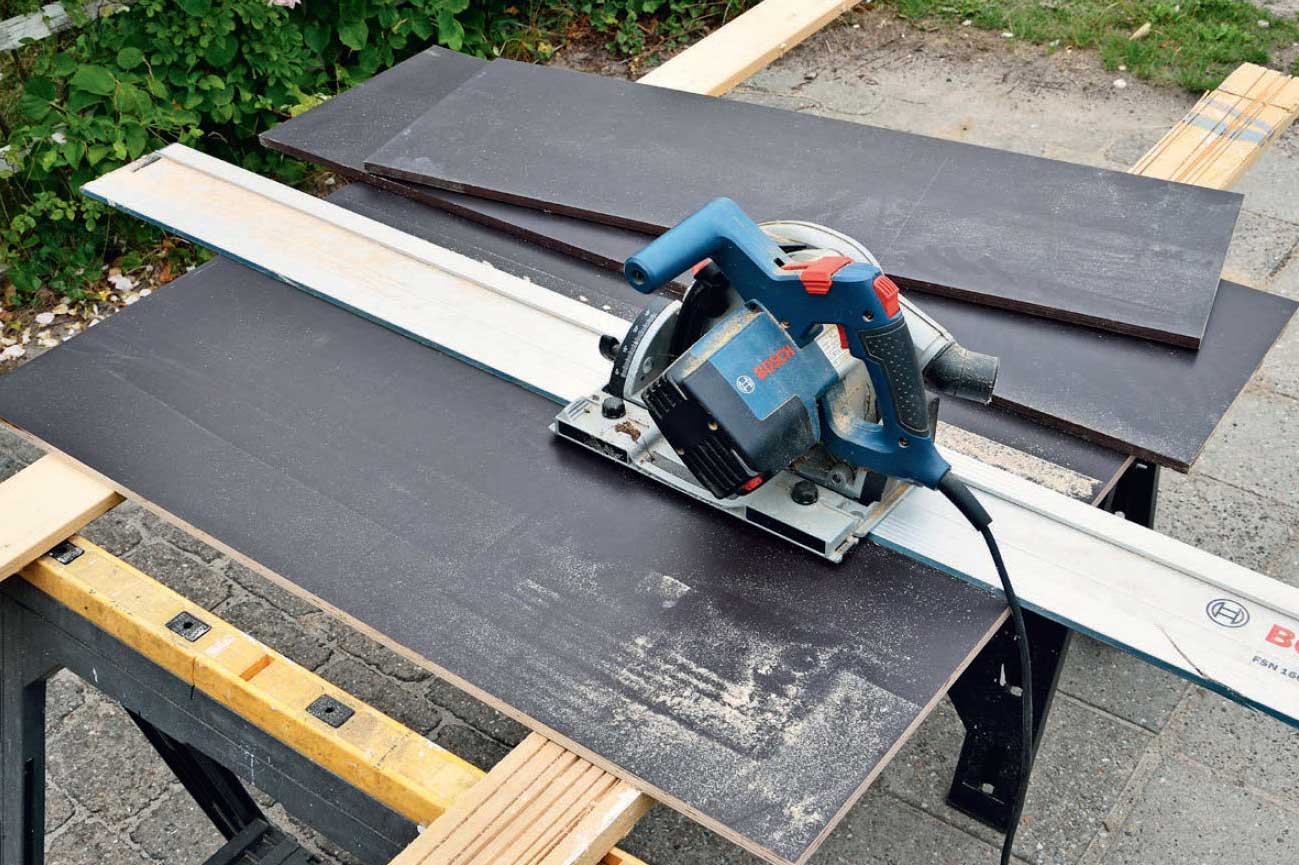 För att säkra bra hållbarhet bygger vi garaget av formplywood. Det håller för fukt och är prismässigt överkomligt. En 12 mm skiva på 120 x 250 cm, som räcker gott och väl till det här projektet, kostar cirka 500-600 kronor på lågprisbyggmarknader.