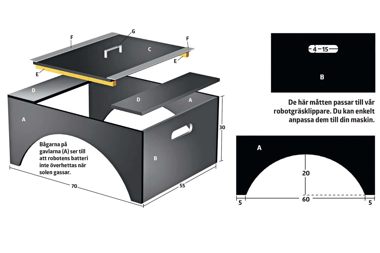 Skruva fast handtaget på locket. Då är garaget till robotgräsklipparen färdigt och redo att börja användas.