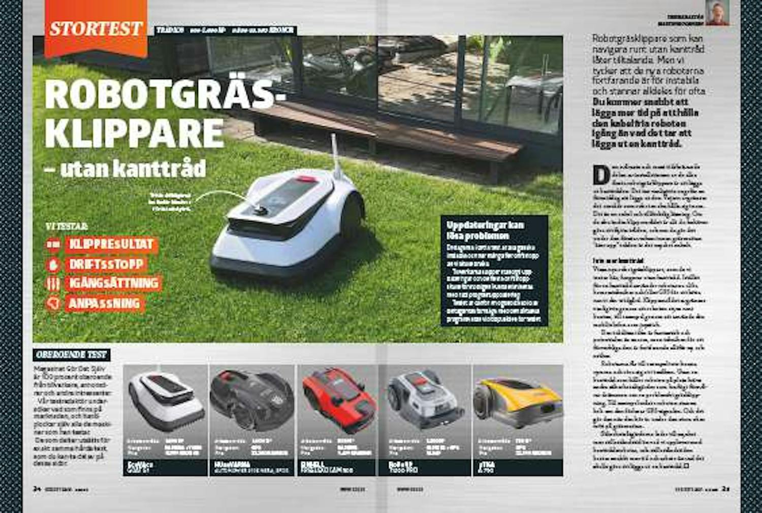 Istället har vi valt testvinnaren från vårt stora test av robotgräsklippare från 2023. Parametrarna är lite annorlunda, men om den hade varit med här hade den helt klart vunnit testet. Den hade inte ett enda driftstopp under testperioden och priset är endast ca 11.000 kr.