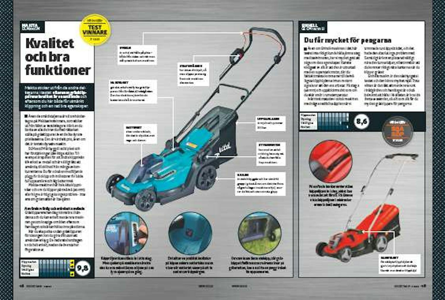 Även de små detaljerna är väl omhändertagna på Makitas testvinnare, som sticker ut från fältet av testdeltagare. Här kan du bocka av alla de krav du med rätta kan ställa på gräsklippare i även de lite dyrare prisklasserna. Den är värd sitt pris, även om det är testets dyraste maskin.