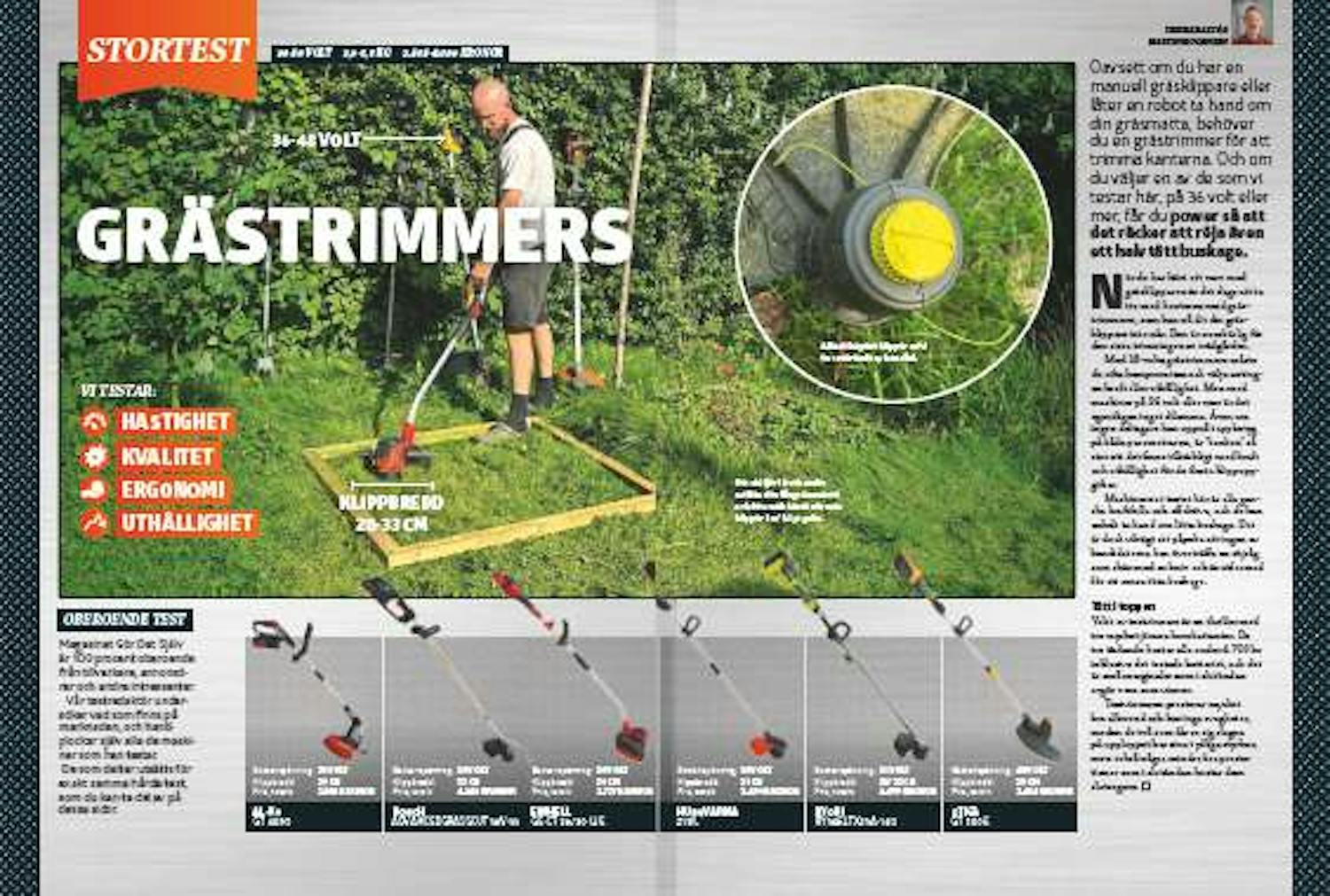 Oavsett om du har en manuell gräsklippare eller låter en robot ta hand om din gräsmatta, behöver du en grästrimmer för att trimma kanterna. Och om du väljer en av de som vi testar här, på 36 volt eller mer, får du power så att det räcker att röja även ett halvtätt buskage.