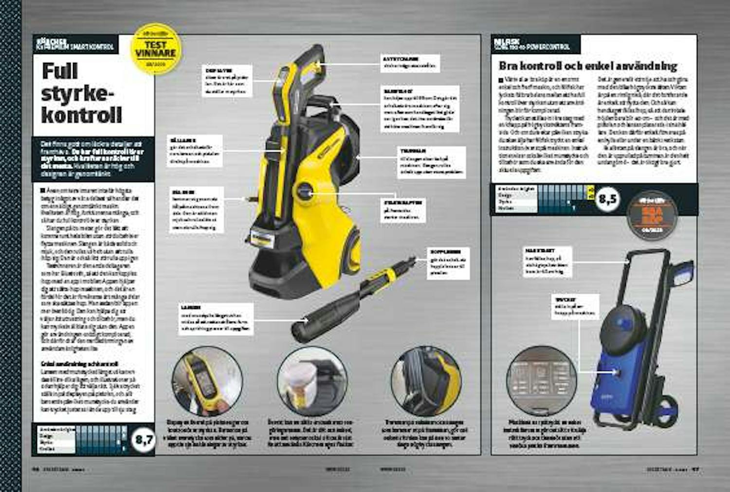 Även om testvinnaren inte får högsta betyg i något av våra deltest så handlar det om en väldigt genomtänkt maskin. Kvaliteten är hög, funktionerna många, och så har du full kontroll över styrkan.