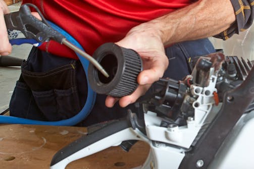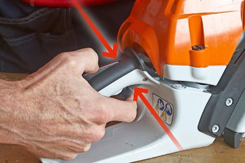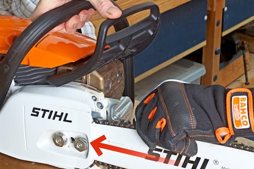 Gammal bensin kan orsaka startproblem, så den måste tömmas ut. Låt sedan sågen köra tills den stannar. På det sättet säkrar du att förgasaren är tom, så membranen inte klibbar ihop.